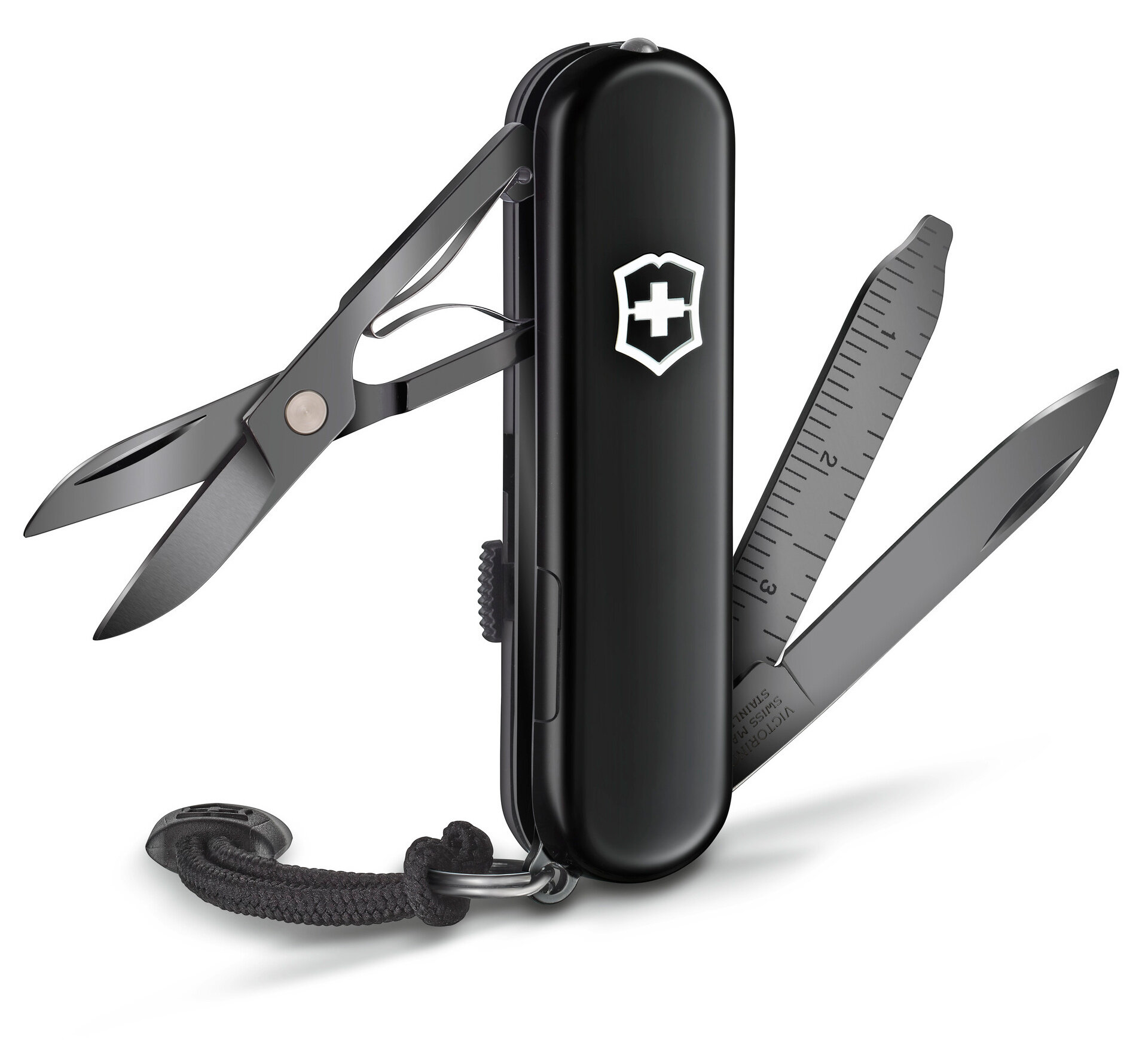 Нож-брелок VICTORINOX Signature Lite Onyx Black, чернёная сталь, 58 мм, 8 функций, черный, со шнурком, в подарочной коробке 0.6226.31P