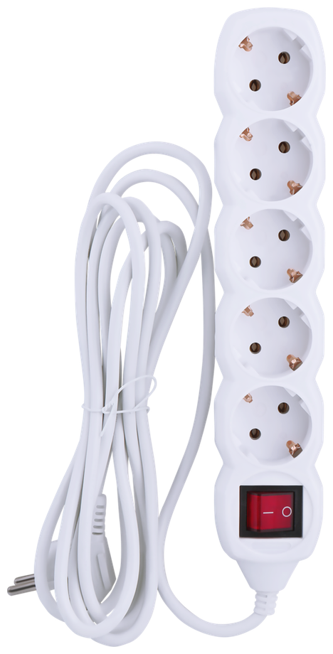 Удлинитель 5 розеток с заземлением 3 метра с кнопкой 3х0,75мм2 старт