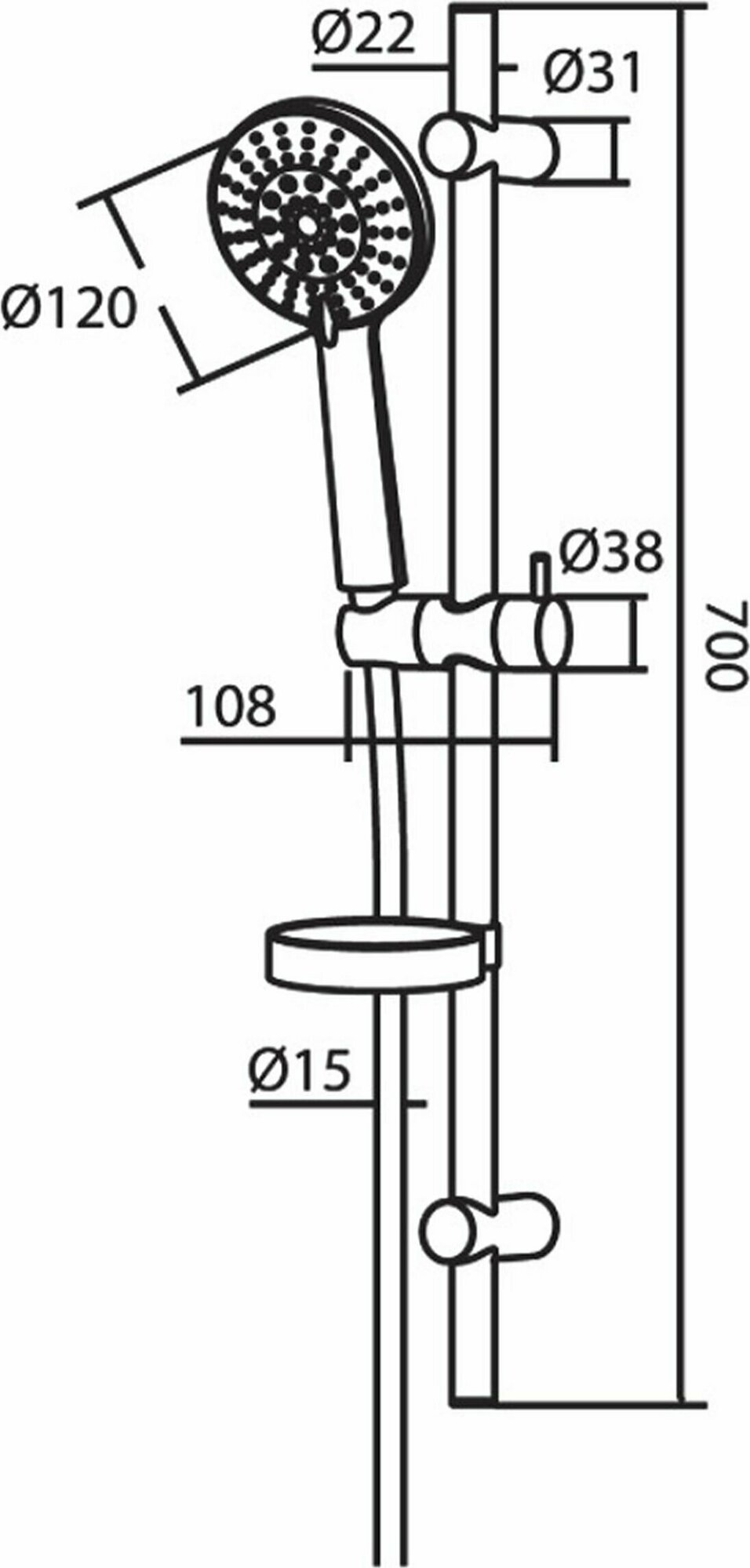 | Дополнительная информация | высота стойки для душа: 700 мм; диаметр душевой лейки: 120 мм |