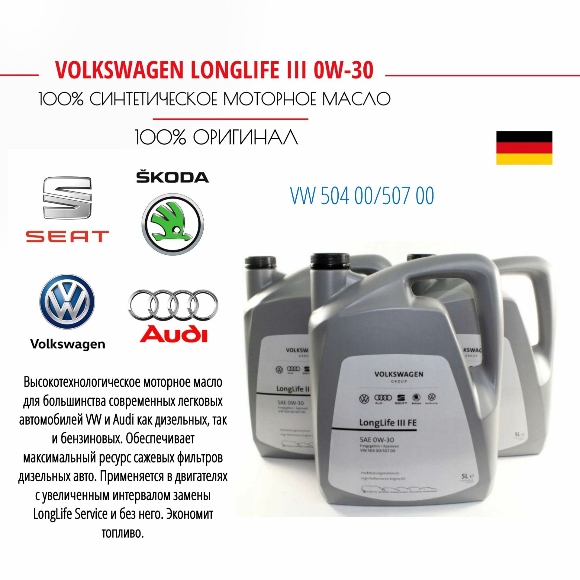 Моторное масло VW GROUP LongLife III 0W-30 синтетическое 5 л «Сделано в Германии»