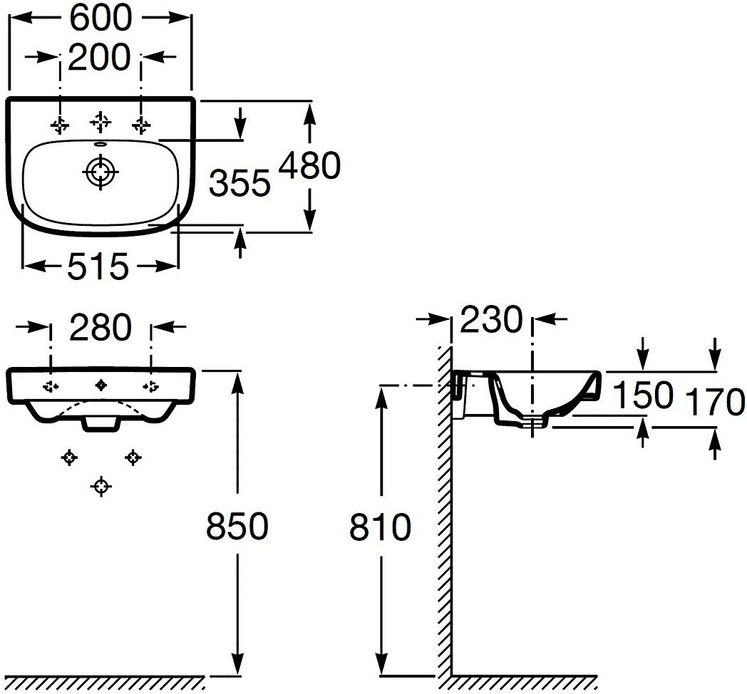 Раковина подвесная Roca DEBBA 60х48х17 керамика, цвет Белый (732799400Y)