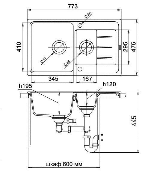 Мойка кухонная EWIGSTEIN ELEGANT 60KF (E-60KF серый металлик) интересное: