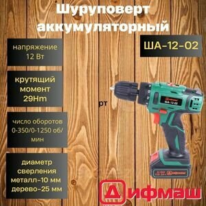 Аккумуляторная дрель-шуруповерт дифмаш ША-12-02