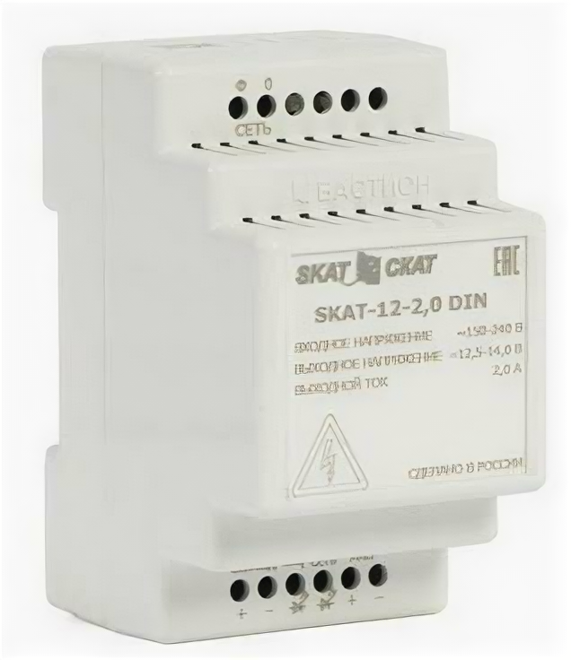 Источник питания SKAT-12-2.0 DIN 12В 2,3А АКБ внешн. 1х7-17Ач ток заряда 2,0–Iнагр. SKAT-12-2.0 DIN power supply 12V 2.3A external battery 1х7-17Ah charge current 2.0 – Iload.