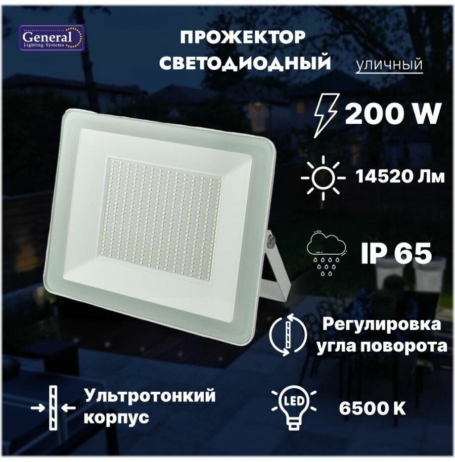 Светодиодный прожектор GENERAL IP65 6500К 200Вт (GTAB-200BT-IP65-6500-W)