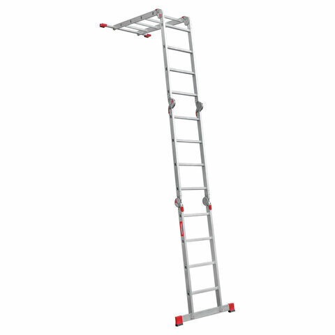 Купить Лестница-трансформер алюминиевая 4х4 ступени, высота 4.5 м (4 секции по 1.2 м) до 150 кг, вес 16.5 кг, новая высота, 3320404