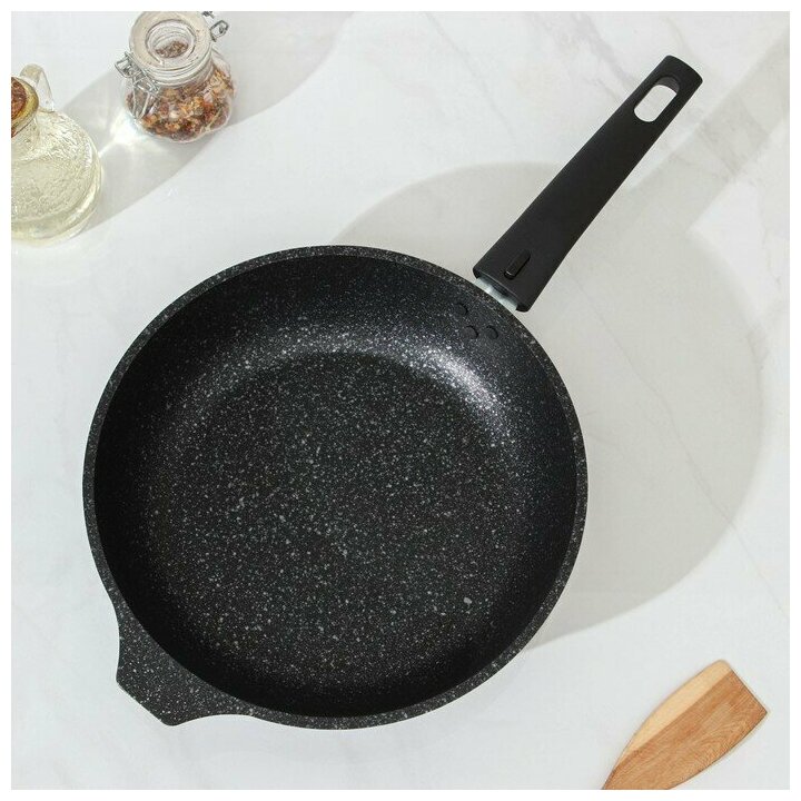 Сковорода, d=24 см, съёмная ручка, антипригарное покрытие, цвет тёмный мрамор KUKMARA 4278883 .