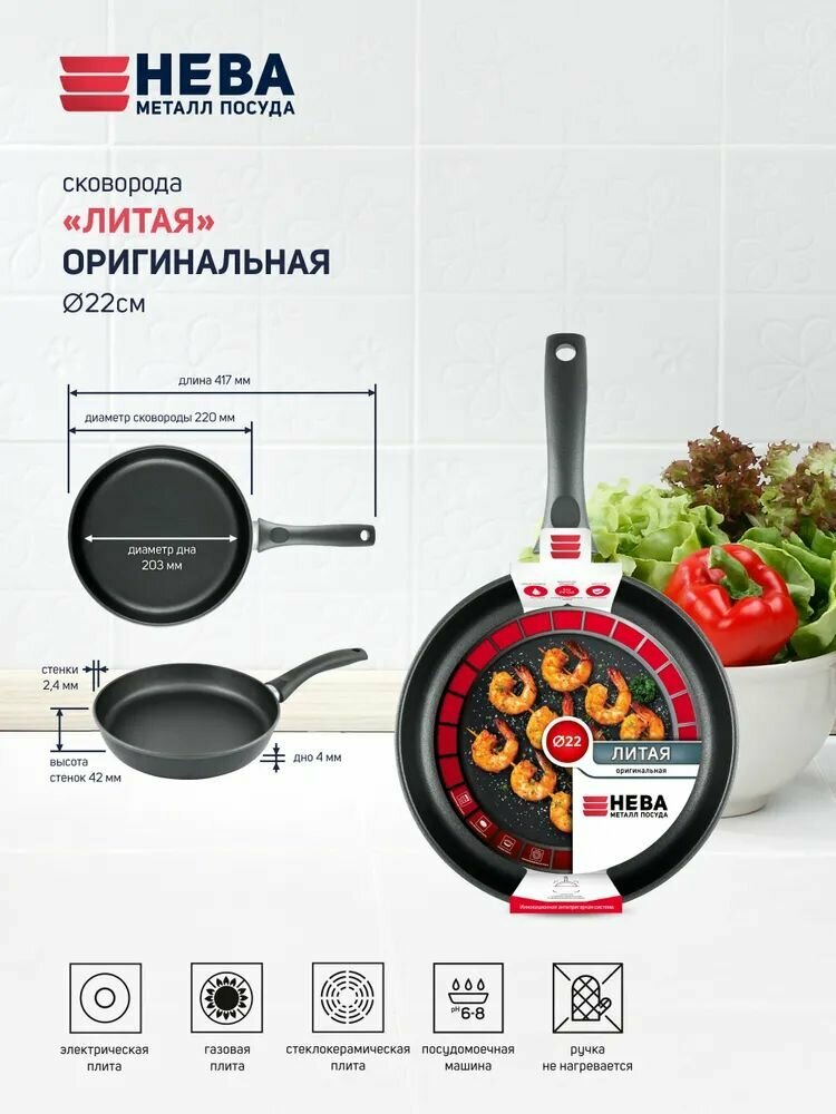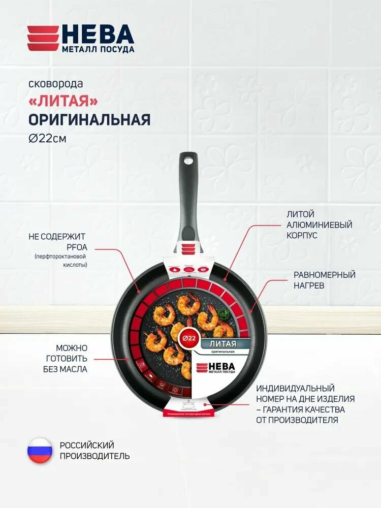 Сковорода НЕВА МЕТАЛЛ ПОСУДА Оригинальная, диаметр 22 см