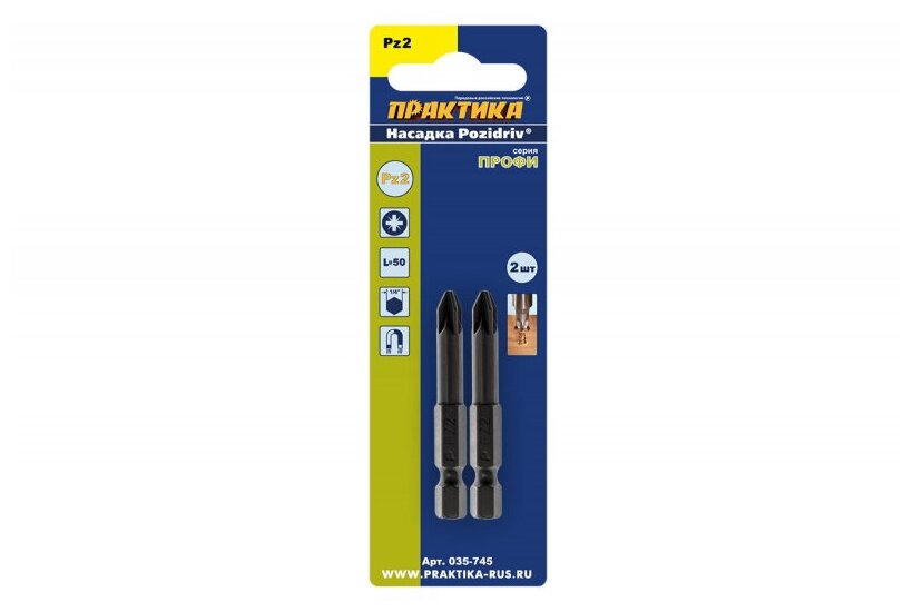 ПРАКТИКА Биты PZ- 2- 50мм Профи 2 шт в блистере 035-745