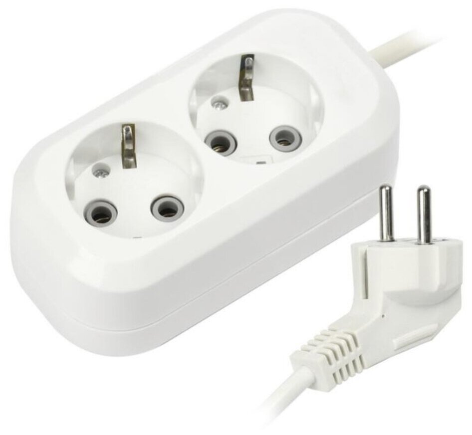 Купить Удлинитель электрический Smartbuy SBE-10-4-05-N 2 розетки 3х1 с заземлением, 2 м