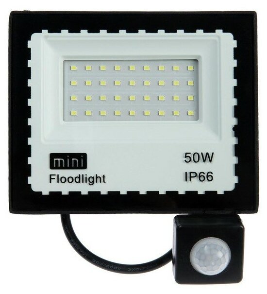 Купить Прожектор светодиодный Luazon Lighting 50 Вт, 4000 Лм, 6500К, Датчик движения, IP66