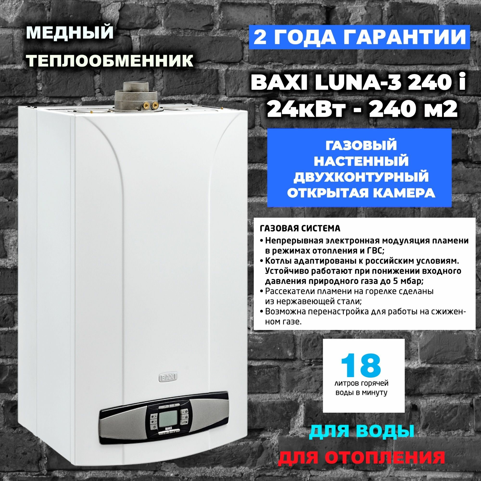 Настенный газовый котел Baxi LUNA-3 240 i, двухконтурный (открытая камера) интересное: