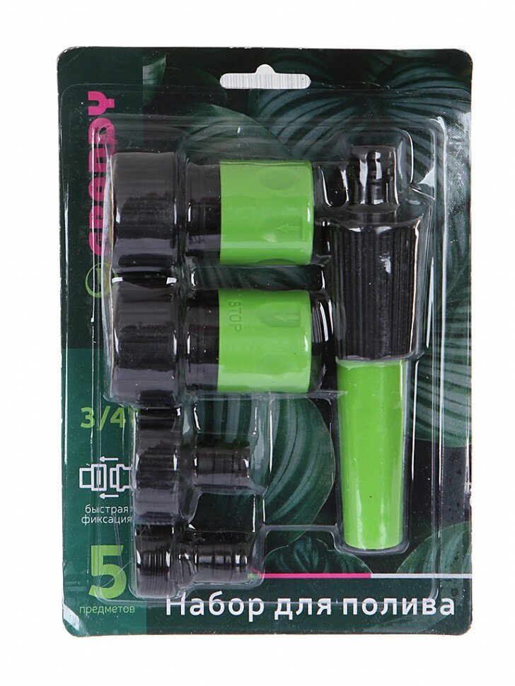 Набор для полива насадка поливочная + 4 фитинга для шланга 3/4", Grandy