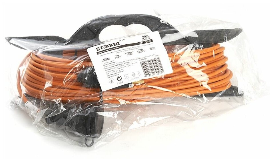 Удлинитель-шнур на рамке 1-местный c/з Stekker, HM02-01-30, 30м, 3*0,75, серия Home, оранжевый, 39496