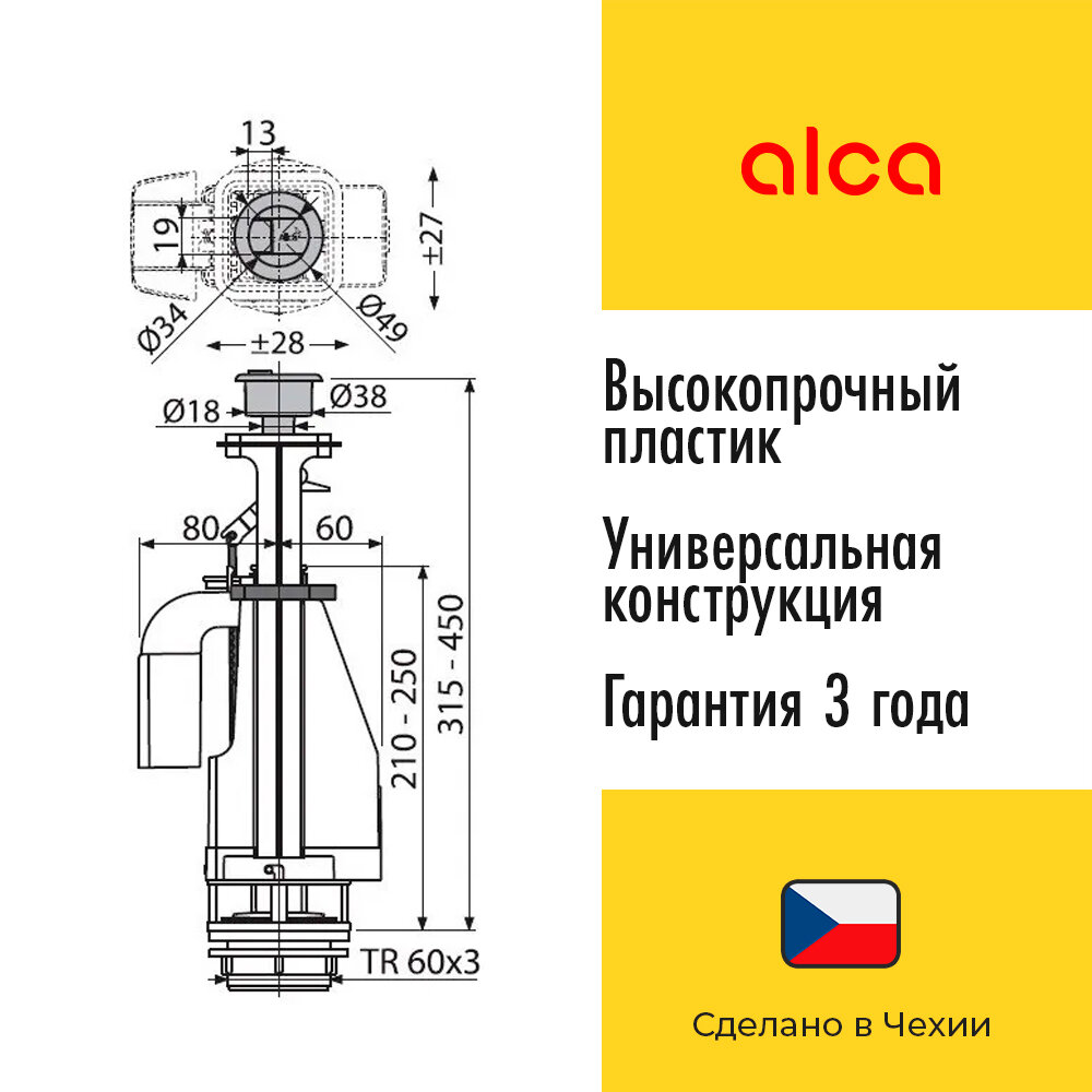 Alcaplast Сливной механизм для системы инсталляции AlcaPlast A08A интересное: