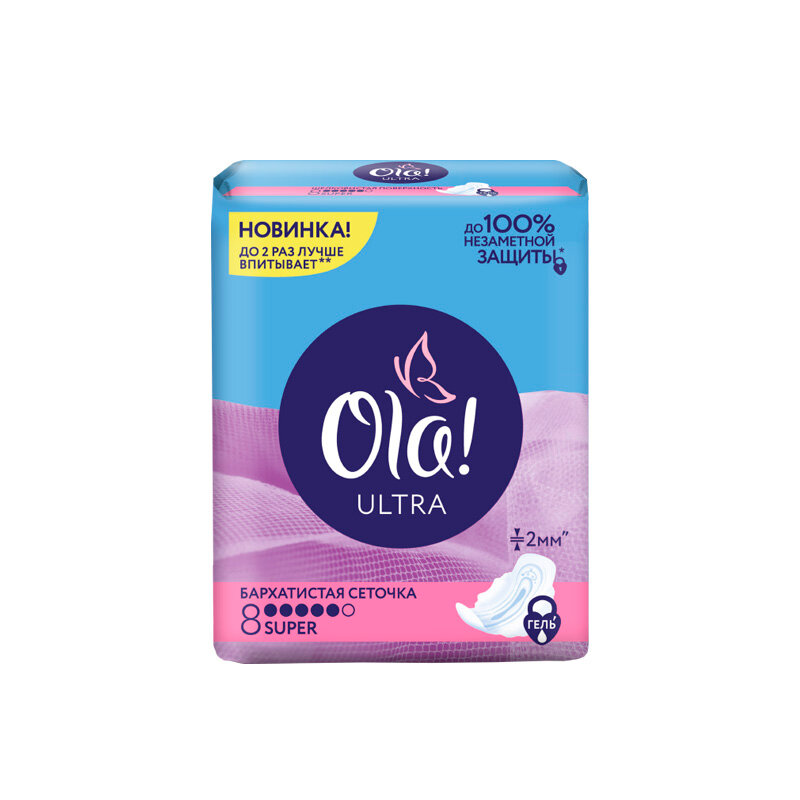 Ola Гигиенические прокладки Ultra Super, бархатистая сеточка, 8 шт в уп