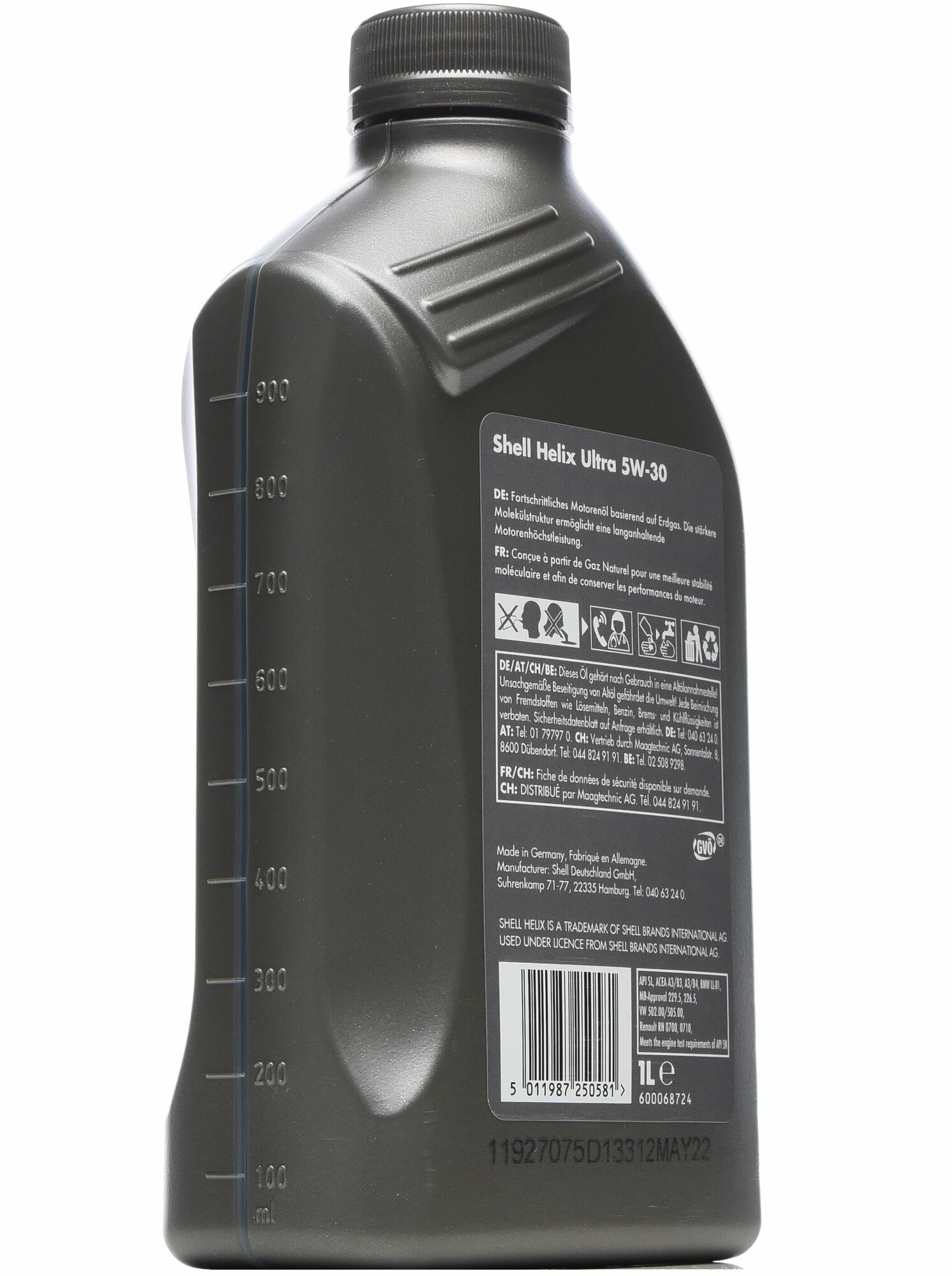 Синтетическое моторное масло SHELL Helix Ultra 5W-30 (550046387), импорт, без кода на крышке, Германия, 4 л