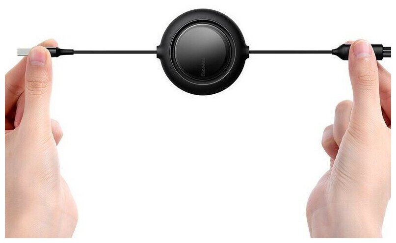 Кабель для передачи данных / быстрой зарядки /Провод Рулетка/Baseus Bright Mirror One-for-three Retractable Data Cable USB to M+L+C 1.2m 66W Black