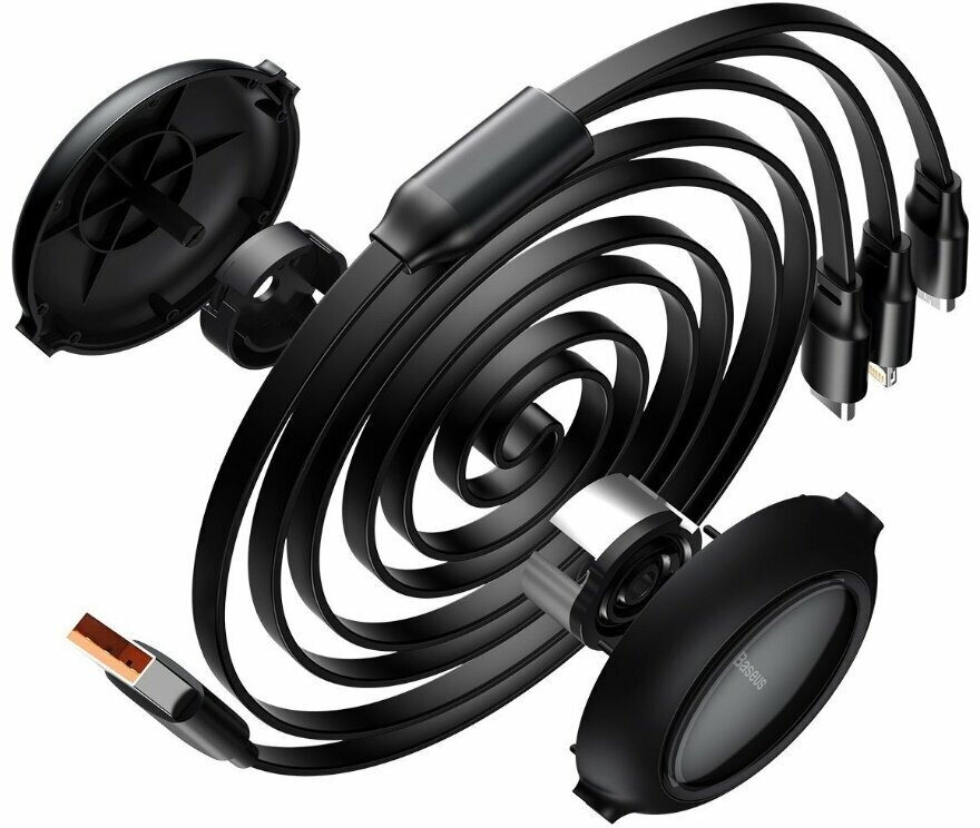 Кабель Baseus Bright Mirror One-for-three Retractable Data Cable USB to M+L+C 3.5A 1.2m Black (CAMLT-MJ01)