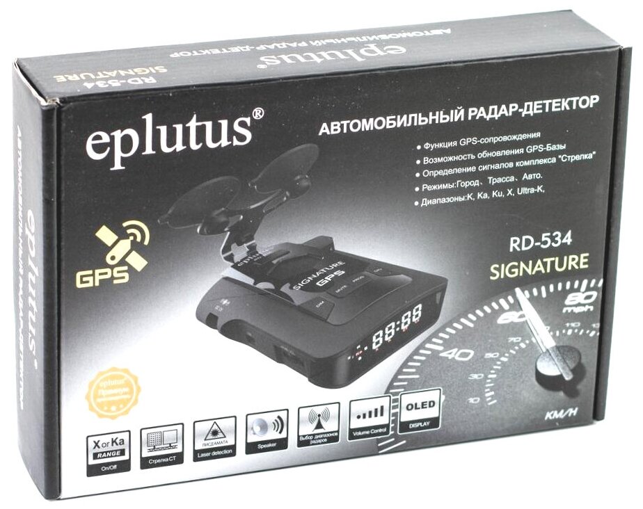 Купить Cигнатурный антирадар - радар детектор Eplutus РД-534 (U59179IC) с GPS и OLED дисплеем. Длина волны лазера 800-1100 (нм)