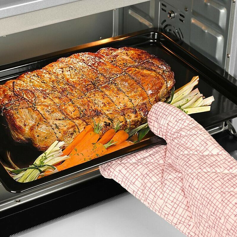 | Минусы: | По ощущениям температура не дотягивает до написанной, например если в рецепте написано запекать при 180, то в этой печи нужно поднять хотя бы до 200 или больше. Но это не вызывает негатива, просто нужно помнить. Вилка с проводом реально короткие, скорее всего без удлинителя не обойтись. |