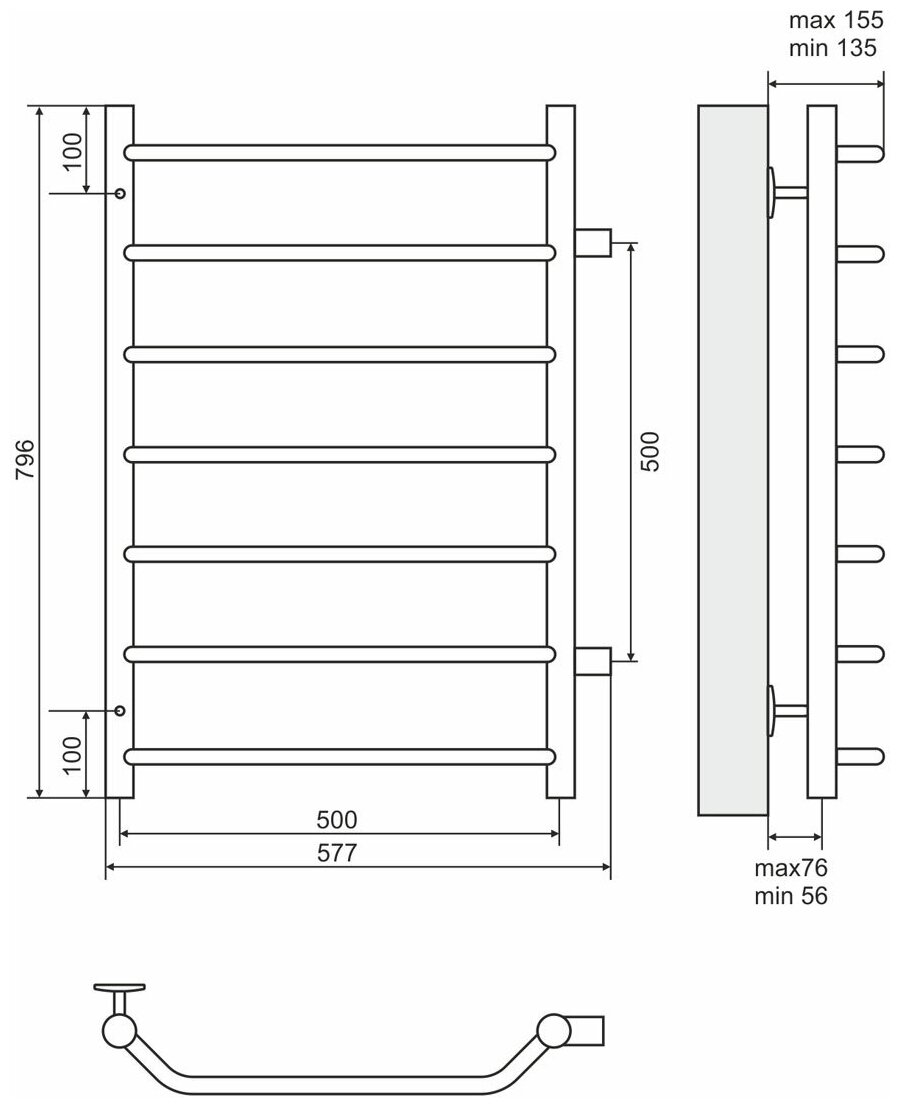 Водяной полотенцесушитель Terminus Виктория П7 500x796 с боковым подключением 500 интересное: