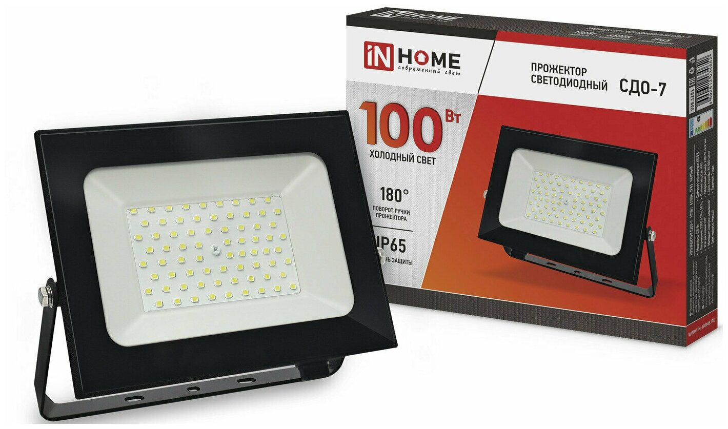 Прожектор светодиодный IN HOME СДО-7 100Вт 230В 6500К IP65 черный