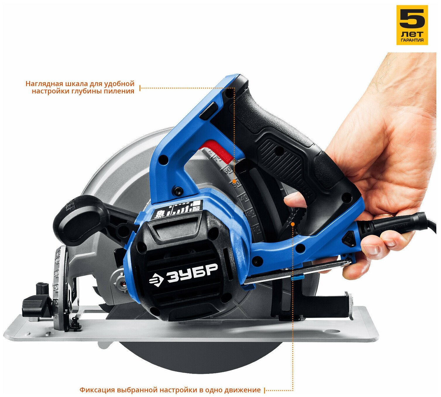 Циркулярная дисковая пила Зубр Профессионал. Мощность: 1600 Вт. Диаметр диска: 190 мм.