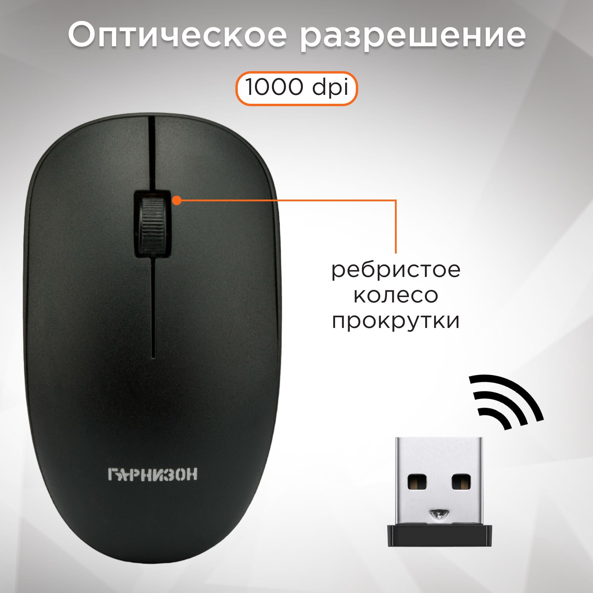Гарнизон Комплект клавиатура + мышь GKS-150, беспроводная, бчерный, 2.4 ГГц, 1000 DPI, USB, з кл + колесо-кнопка, nano-приемник}