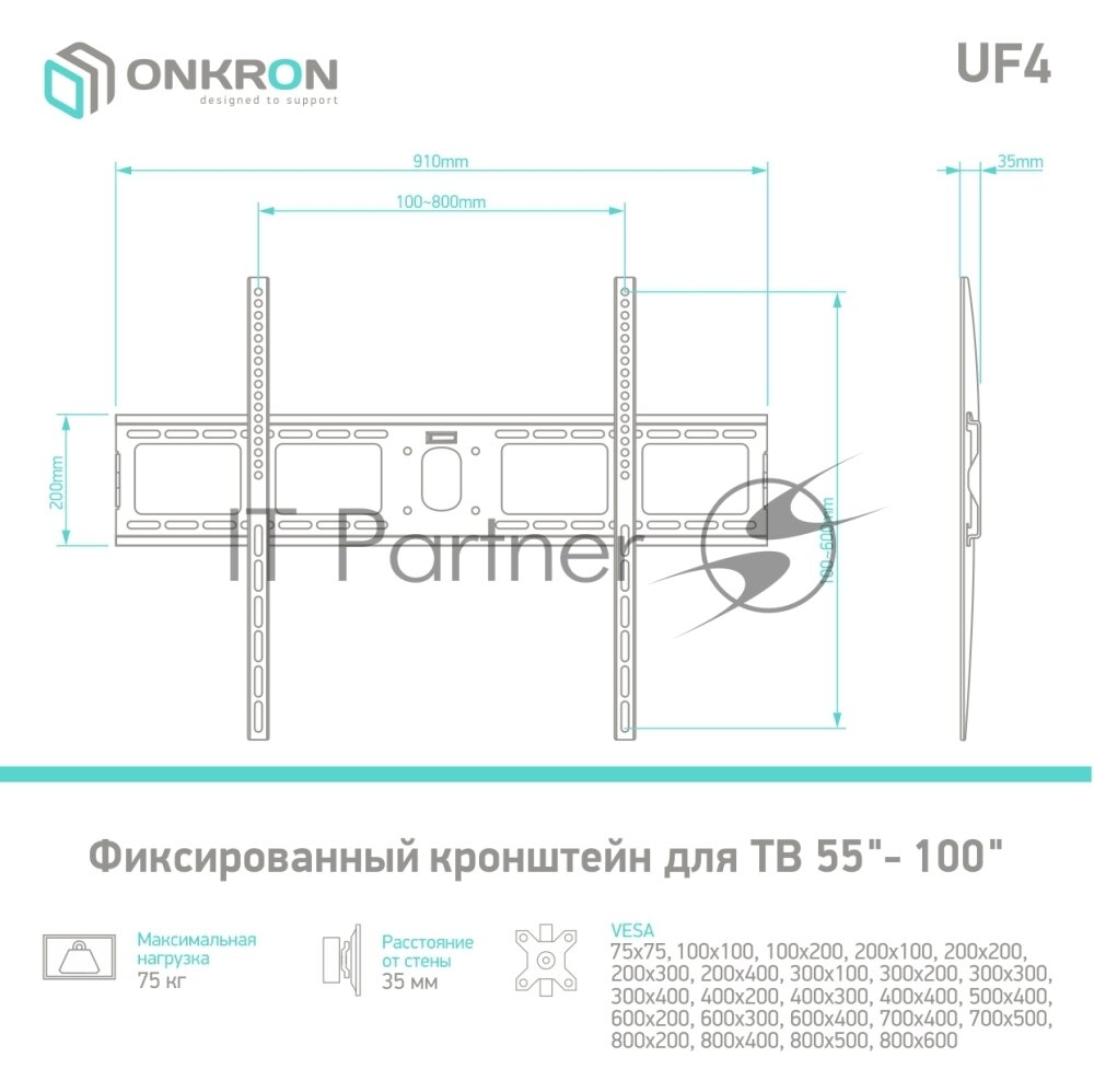 Кронштейн ONKRON UF4, для ТВ, фиксированный, 55"-100", 35 мм от стены, черный