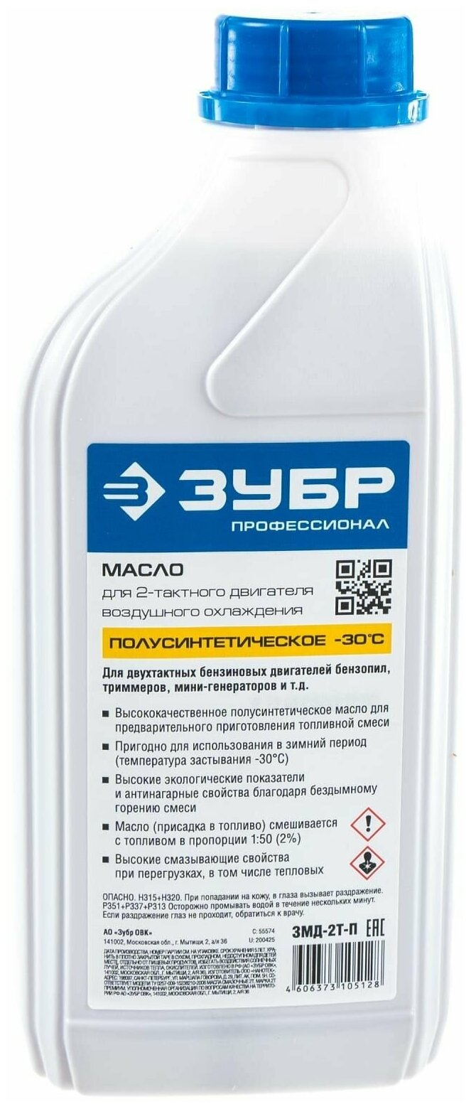 Купить Масло полусинтетическое "премиум" для двухтактных двигателей 1 л Зубр ЗМД-2Т-П подарок на день рождения мужчине, любимому, папе, дедушке, парню