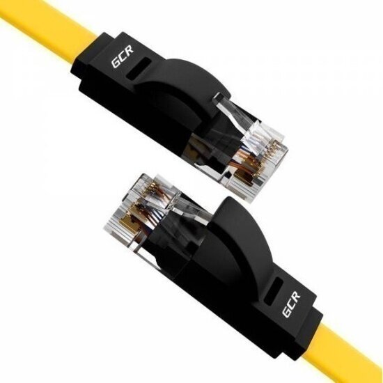 Патч-корд GCR PROF плоский UTP cat.6 10 Гбит/с RJ45 LAN компьютерный кабель для интернета медный контакты 24K GOLD (GCR-LNC62) желтый;черный 1.0м
