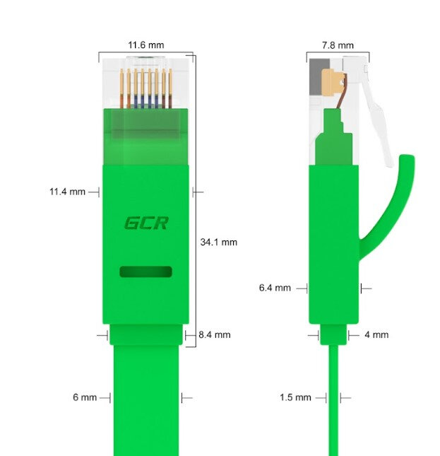 LAN кабель 15м GCR PROF плоский UTP cat.6 10 Гбит/с RJ45 LAN кабель для интернета медный контакты 24K GOLD (GCR-LNC62) зеленый
