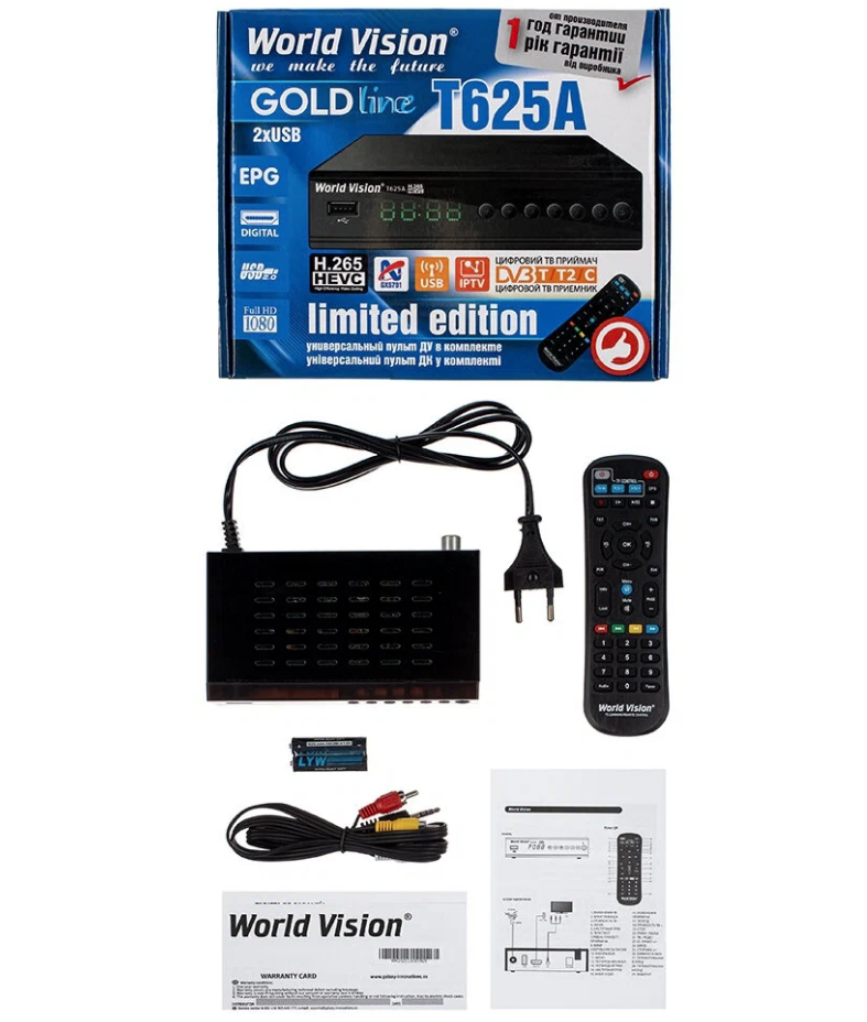 Цифровые ресиверы DVB-T2 World Vision Цифровой ресивер World Vision T625A (Эфирный, DVB-T2/C, HD, Dolby Digital)
