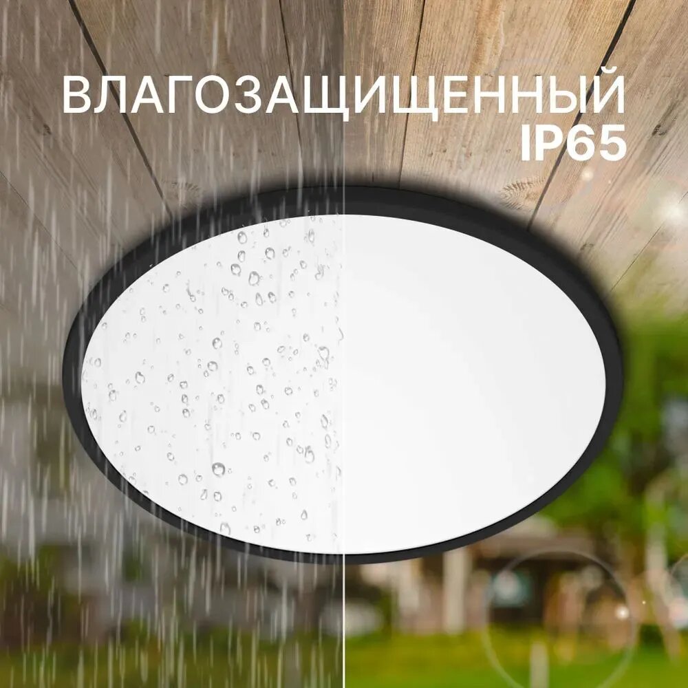 LEEK светильник светодиодн. декоративный влагозащ 24W(1920lm) 5000K 6K черный, круг 298x45 ЖКХ BL IP65 (арт. 875546)