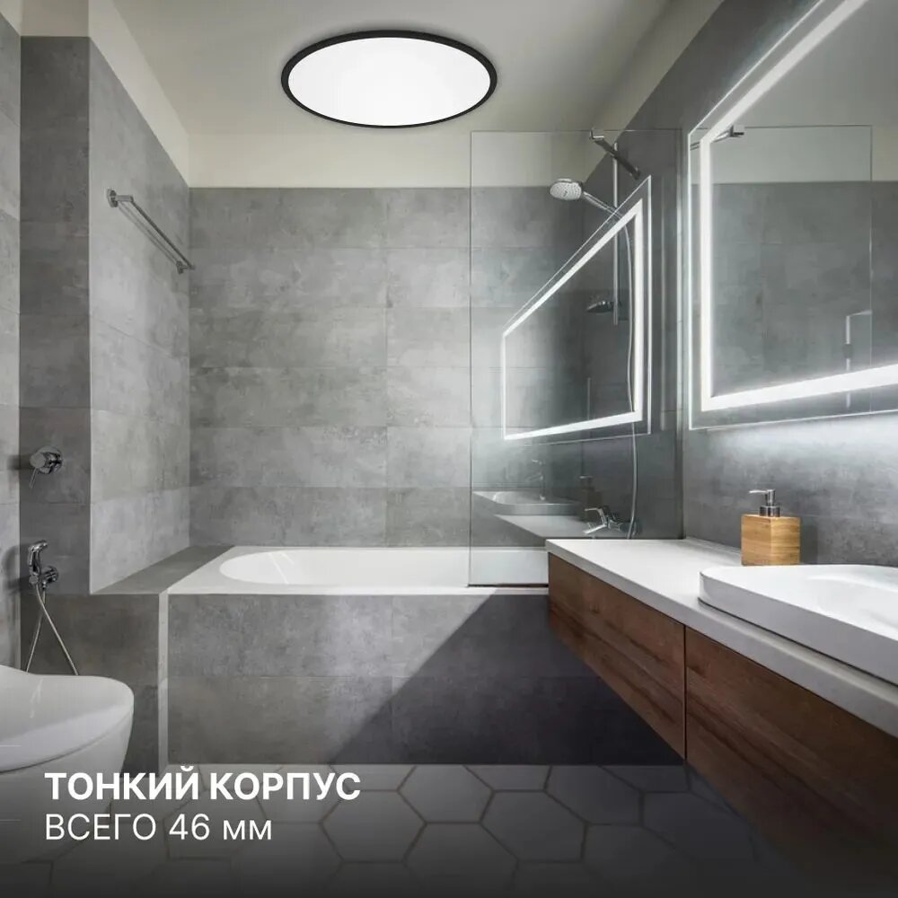 Светильник потолочный светодиодный, Люстра потолочная влагозащищенная LEEK LE LED BL, 40 Вт для ванной/ санузла/ прихожей/ кухни Черный 1шт