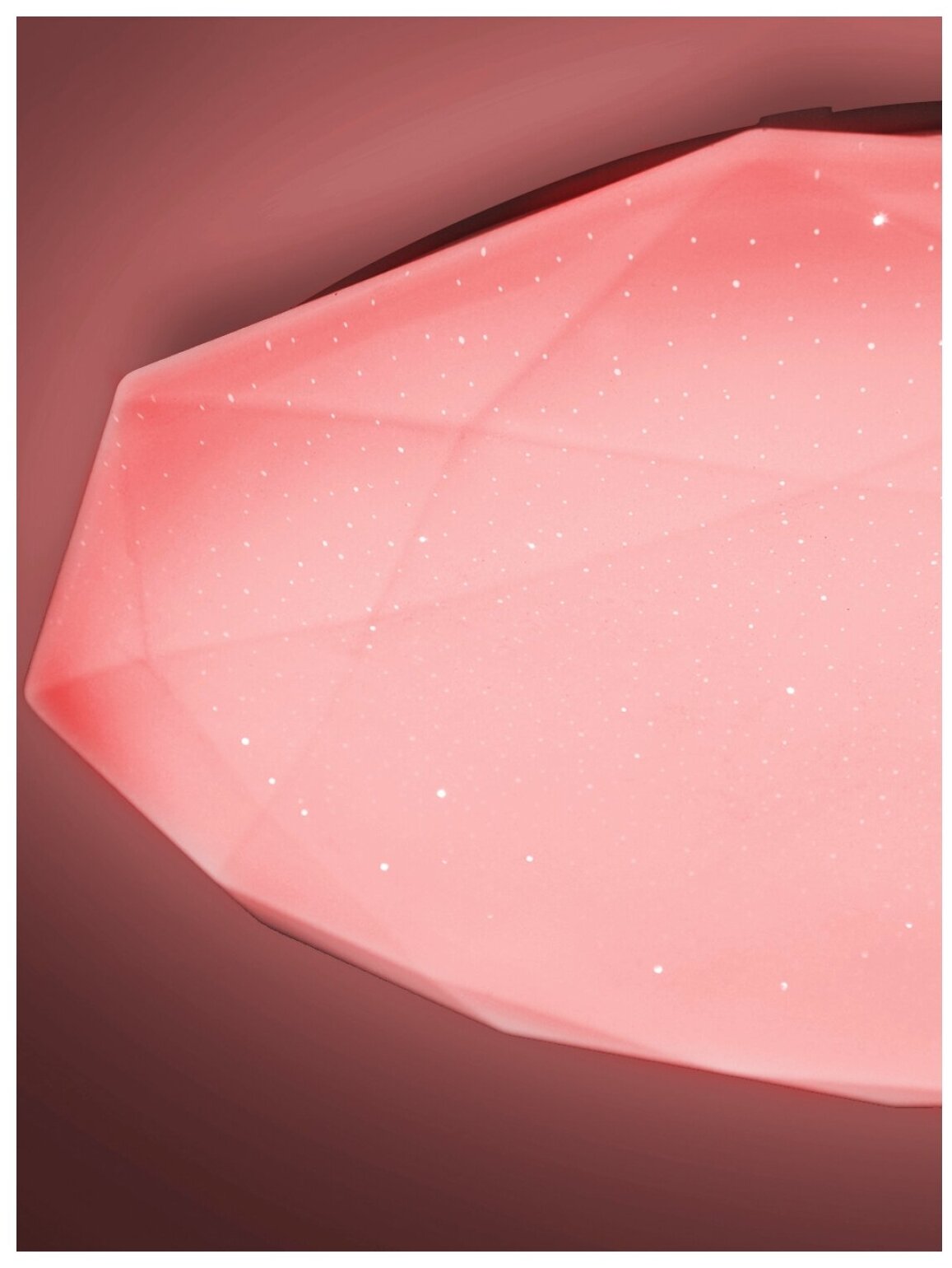 Очень лёгкий светильник, на пульте. Диаметр 50см, смотрится достойно в любой комнате, искорки на плафоне дают необычный дополнительный эффект свечения. Меняет освещение от яркого до полумрака, ну а цветное переключение вообще класс
