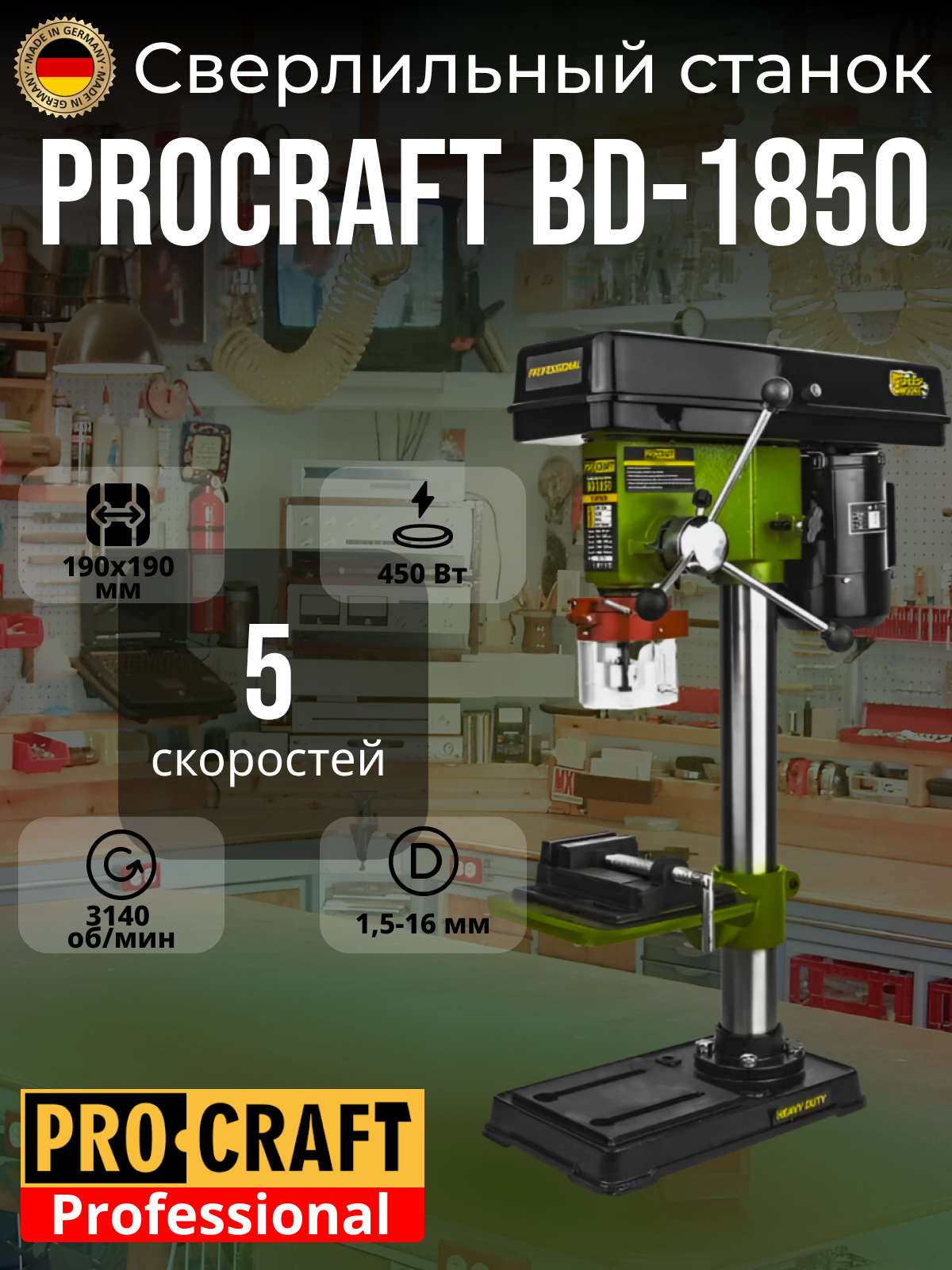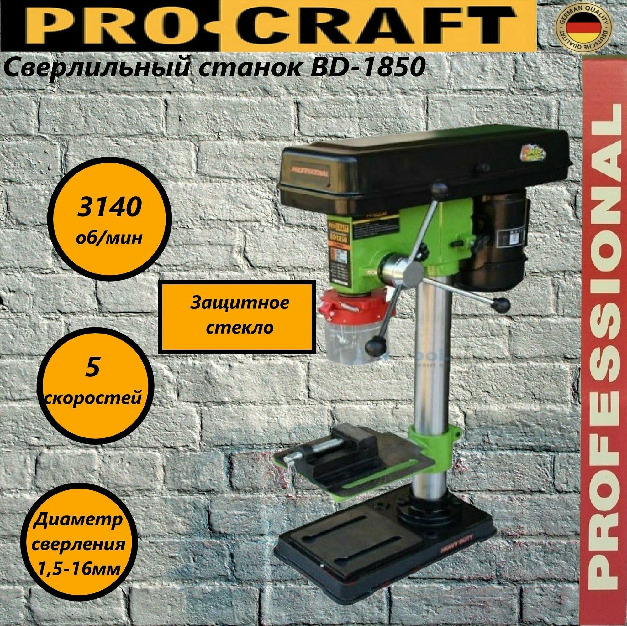 Сверлильный станок Procraft BD-1850, 5 скоростей, патрон 16мм, 3140об/мин, 450Вт интересное: