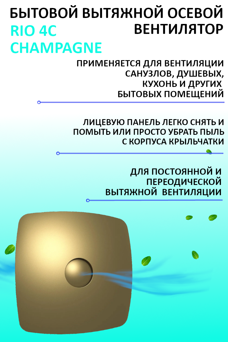 СохранитьВентилятор вытяжной осевой DICITI RIO 4C Champagne, с обратным клапаном, с двигателем на шарикоподшипниках, D 100 мм, шампань интересное: