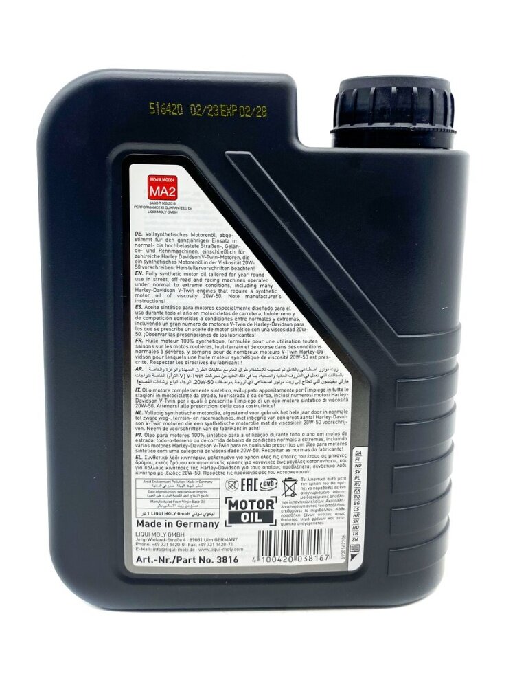 Синтетическое моторное масло LIQUI MOLY Motorbike HD Synth Street 20W-50, 4 л, 3.741 кг, 1 шт