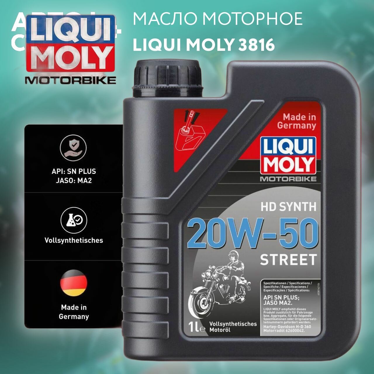3816 liqui moly синтетическое моторное масло для 4-х тактных мотоциклов motorbike hd synth street 20w-50 sl (1л)