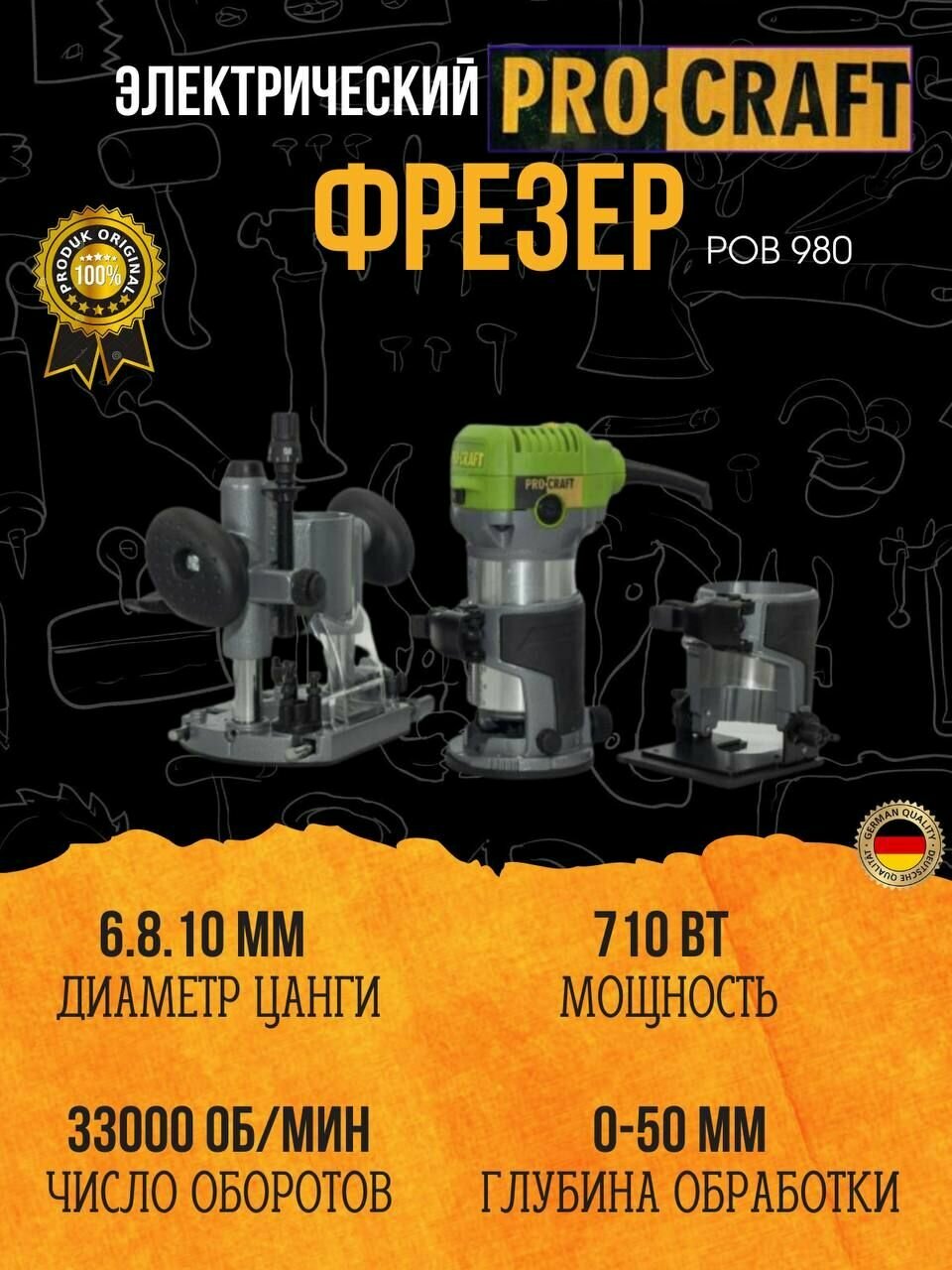 Фрезер электрический Procraft POB980, цанга 6/8/10мм, 710Вт, 33,000об/мин интересное: