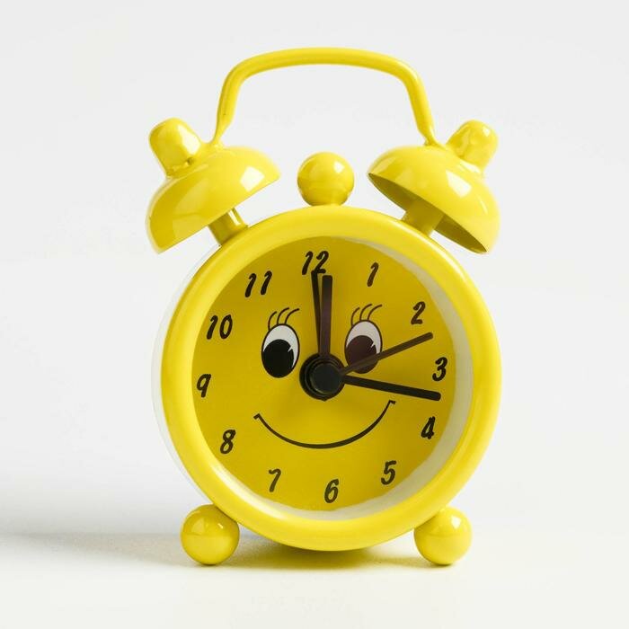 Купить Будильник "Смайлик", дискретный ход, d-4 см, 6 х 4.5 см