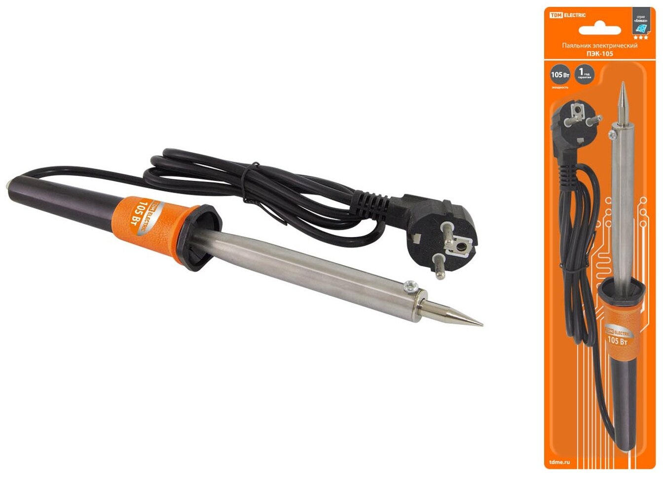 Паяльник ТДМ "Алмаз" ПЭК-105, 105Вт, 230В, керамический ТЭН, долговечное жало с заземлением, прорезиненная ручка