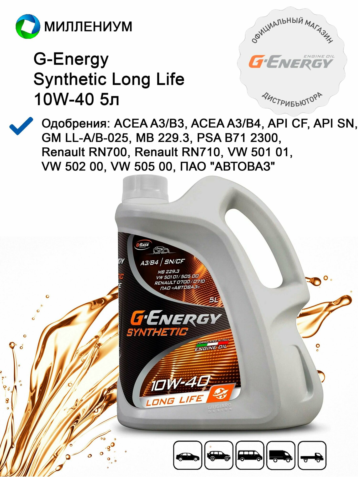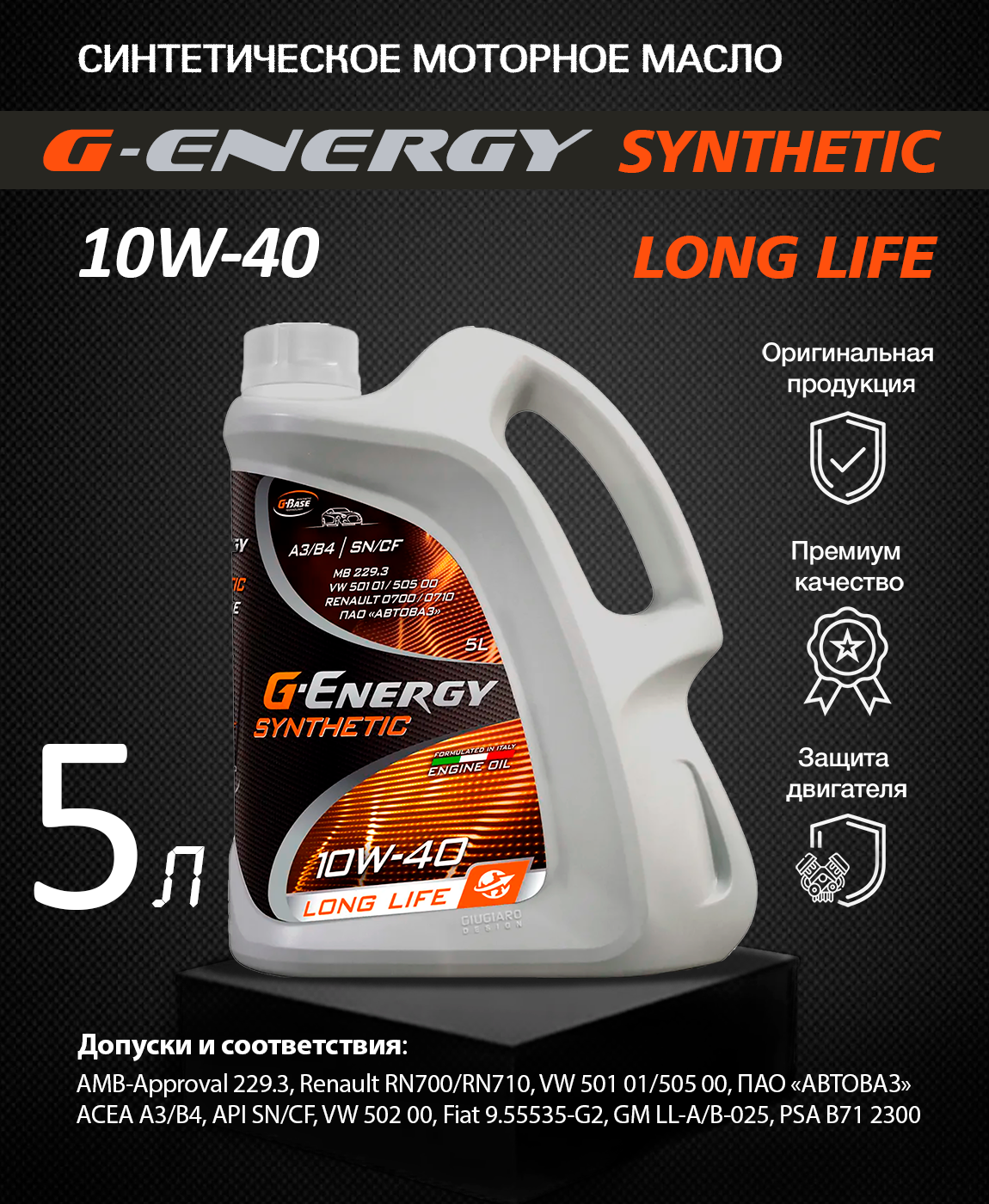 Синтетическое моторное масло G-Energy Synthetic Long Life 10W-40, 5 л, 4.3 кг, 1 шт
