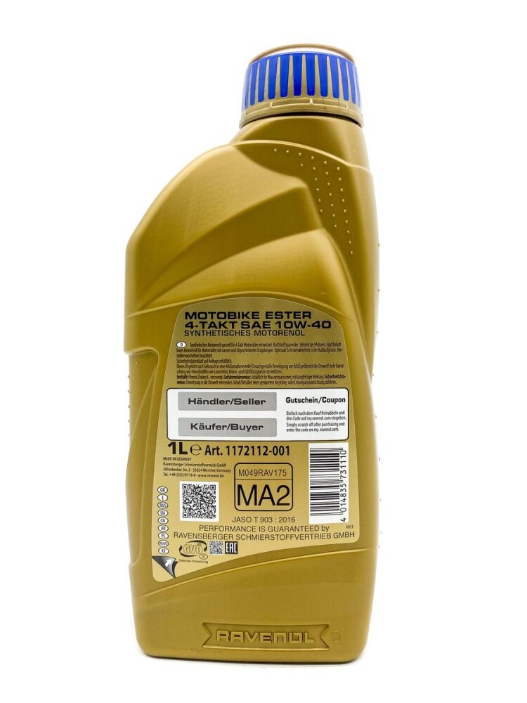 RAVENOL 4014835731110 Масло моторное Ravenol Motobike 4-T Ester 10W-40 1 л 4014835731110