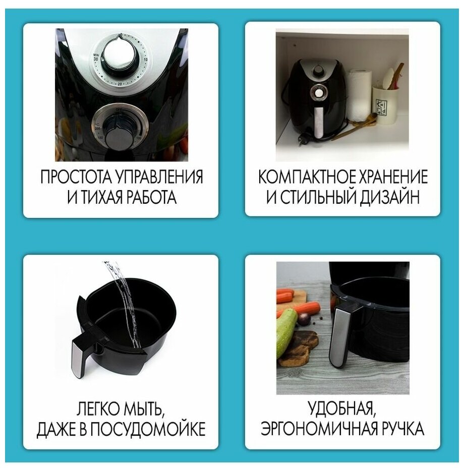 Аэрогриль, аэрогриль мультипечь, 2000Вт, 2.5 литра, регулировка температуры, таймер, антипригарное покрытие интересное: