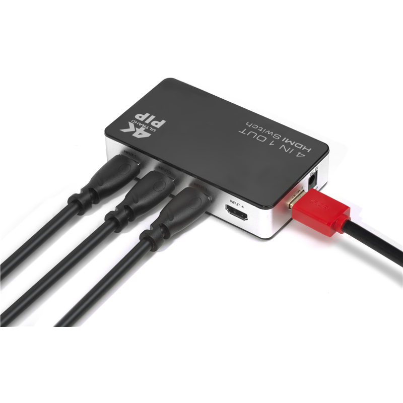 Greenconnect Переключатель 4->1 HDMI 4K/30HZ, PIP(картинка в картинке) , пульт ДУ, БП серия Greenline GL-v401P Greenconnect Переключатель Greenline HDMI 4 к 1 + PIP + доп питание (GL-v401P)