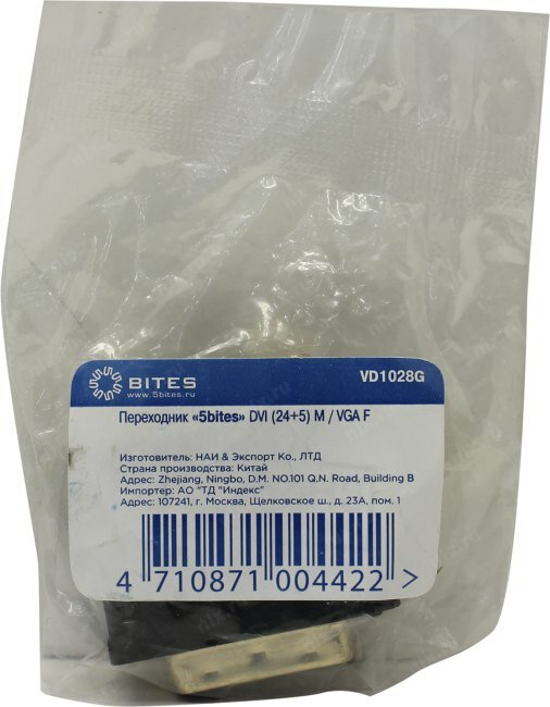 Переходник 5BITES VD1028G DVI (24+5) M / VGA F интересное: