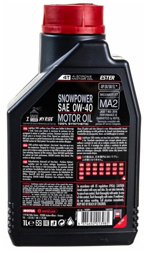 Motul 4t Moto 0w40 Snowpower (Для Снегоходов) Синт. 1л Масло Моторное MOTUL арт. 105891